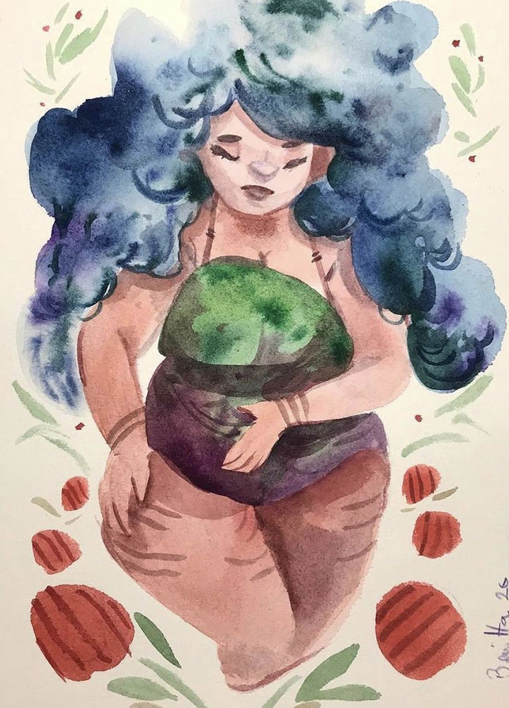 Coleção de aquarelas que representam a pluralidade étnica, especialmente simultaneamente negros e amarelos.